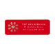 En modern returadressetikett för anpassade säsong. Den här etiketten har en fin röd bakgrund med vintersnöflingan guld och texten från det vita anpassadet adress. Denna punkt är en del av Stacey Meachams första Snö-helgdag-insamling.