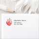 Ett rött jordgubbsbär med rosa båge. Anpassa och lägg till ditt namn och adress. Black brev.