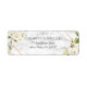 Den här returadressetiketten för bröllop har en modern, elegant och trendig som har en ytlig koppargeometri som är förskönad med vattenfärgsvit blommigt och eucalyptus grönenery blommigt, över ett faux white marble struktur. Del av en matchande uppsättning. Copyright Elegant Inbjudan. Alla höger reserverade.
