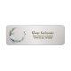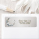 Returadress Boho White Orchid Flower Blue Måne etikett. Unik, vacker utformning av snyggten. Lätt att vara personlig. Teckensnittet stil, storlekt och färg kan ändras. Matchande objekt är tillgängliga.