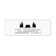 Rustisk returadressetikett med en silhuett av en björn som går i en skog i träd, och din familj namn och adress i enkel modern typografi.