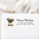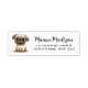 Returadressetikett med en vattenfärgad illustration av en söt liten pug och ditt namn i ett vismiskt skript med adress nedan.