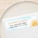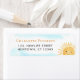 Den här sol-temade återvändandeadressetiketten för babyduschen är dekorerad med en söt vattenfärg som leker sol mot blå himmel. Texten är anpassade. Ursprunglig vattenfärg © Michele Davies.