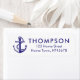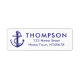 Ett nautiskt temat marint blått namn och återvändandeadressetikett med ankare och rep bredvid dina uppgifter om familjen namn och adress. Designad av Thisisnotme©