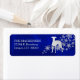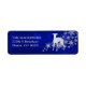 Den här särskilda returadressetiketten har en hund med silhuette Whibit silver framför en sprej av silver snöflingor. Bilden placeras på en övertoningsdjup blå bakgrund. Din anpassningsbar är i silver till lämnad om bilden.
