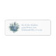 Vackra, dammiga blått, vattenfärg, blommigtar och kulor bukett på lämnat, med personlig returadress om höger. Heltäckande vit bakgrund.