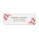 En returadressetikett för contemporary och elegant med en vacker och känslig blommar för körsbär med rosa kompletterad med mörk grått serif blommigt för ett romantiskt men modernt utseende.