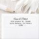 Din adress-personlig på ett enkelt sätt.. på en vit, tydlig och ren etikett med tre linjer text i mitten, och brud och groom namn i skript i stil