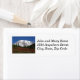 Returetiketter för dina kuvert som innehåller den sceniska fotobilden av ett färgstarkt höstlandskap i berget Rainier National Park. Anpassa etiketterna genom att redigera text och ersätta med egna namn och adress.
