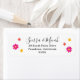 Vibranta och färgstarka returetiketter med ljusa blommor i färgaden.