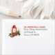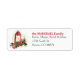 Här är en returadressetikett för söt säsong som har en nostalgisk bild av en lyst röd lampa som sitter mitt i en gräs-dekorerad träd-lampa och gräs-koner. Bakom bilden finns en subtil snurra av liten guld-konfetti, och anpassningsbarnas text är röd och grönt på högerna.