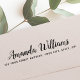 Returadress gummi frimärke med ditt namn och för-/efternamn/familj namn i ett sött och visstiskt calligraphy-skript och adress nedanför