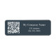 En grått-bakgrund, vit text. Anpassa och lägg till företagets namn, adress och QR-kod till företagets webbplats eller social-mediekontot.