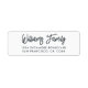 Modern och enkel returadressetikett för familjen namn med ditt efternamn i handskrivet skript för offblack elegant på vit bakgrund. Lägg bara till ditt namn och adress. Enbart designad för dig av Lycklig Dolphin Studio. Om du behöver hjälp eller matchande produkter kontaktar du oss genom vår chatta.