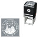 Julgran Winter Home Personal Returadress Self Inking Frimärke har ditt eget namn och returadress i det moderna skript som omger ett hem med Julgranar och snöflingor. Perfekt för julkort, helgdagskort, inbjudningar och julfester till julfester eller på kontoret för varor eller post. Designad av ©Evco Studio www.zazzle.com/store/evcostudio