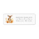 Cute-returetiketter med en vattenfärgad illustration av en hjort/fawn i baby, omgiven av höst löv, i skuggor av orange, rött och gult. Anpassa etiketterna med ditt namn och adress. Adressetiketterna i hjort i baby är perfekt till använda med inbjudningar till babyduschar, födelsedagsfest inbjudan och vardaglig använda!
