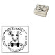 Detta gummi i frimärke har en hund med anpassningsbar i familjen namn och adress.