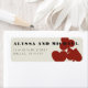 En roligt och en modern bröllopsinbjudan ger dig en adressetikett till inbjudan för dina gäster till ditt evenemang i Las Vegas! Den här etiketten med inbjudan till returadress ger kasinobilder med rött kostym-kort med fetstil och fullt anpassade och text på bakgrunden till elfenbenstorn. Perfekt för trendigets moderna eller klassiska traditionella händelse - den här elegantens inbjudan är mångsidig!