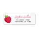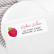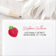 Den här återvändandeadressetiketten för babyduschen är dekorerad med en trycktypografi av vattenfärgsjordgubbar och snyggtar. Det är lätt anpassade. Ursprunglig vattenfärg © Michele Davies.