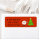 Julkortets returadress: Tomten och Träd gör ett sött tillägg till dina Julhälsningar kortkuvert! Anpassad efter behov. Utformningen har en röd bakgrund, tillsammans med en söt Santa och Julgran. Ändra bara texten så att den passar ditt namn och adress.