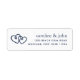 Returetiketter för kustnära chic i klassiskt marint blått och vitt är dina returadresser justerade vid högerna, accentuerade av ett par skarvhjärtillustrationer i marinen.