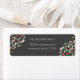 Returadressetikett med en vattenfärgad grönt-folie och röda bär på en svart träkolbakgrund. Lämplig julreturadressetikett för dina julkort eller julklappar.