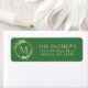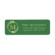 Här är en adressetikett för elegantens returadress för dina helgdag. En enkel, modern utformning av en faux-julkrans i guld som omger ditt monogram i början tillsammans med din returadress mot bakgrund av julens grönt. Minimal är vackert och här är ditt bevis. Kolla in min affär för kompletterande och samordnade produkter. Om du har en designfråga eller vill se den här designen på en annan produkt kan du kontakta mig på jschmidtdesignworks@gmail.com. Design © Judith Schmidt.