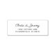 Enkel, modern kursiv stil med bröllop returadress gummi frimärke, med namn i högtidligt svart skript och adress i sans serif-typsnitt.