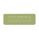 Chic, modern och enkel returadressetikett för bröllop med namn i skripttypografi för vit elegant i snyggt på löv-grönt. Lägg bara till namn och adress till dessa minimala returetiketter för söt. Enbart designad för dig av Lycklig Dolphin Studio. Kontakta oss på happydolphinstudio@outlook.com om du behöver hjälp eller matchande produkter. Vi är lycklig för att hjälpa dig att göra bröllop till den vackraste dagen!