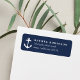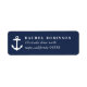 Klassiska nautiska returetiketter har en palett med en liten ankarillustration som är blå och vit färg-palett med en liten parfymbild. Lägg till information om adress i matchande block och kursiv stil. Koordinater med vår Nautical Rope Braid inbjudningskort för möhippa och våra tillbehör finns i samlingen nedan.