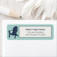 Dessa returetiketter har en illustration av en Adirondack-stol av trä i marint blått mot en ljusblå akrablåbakgrund. Ditt namn är i marinblå skript och adress i marinblå tryckbokstäver mot en gulskvit bakgrund.