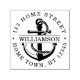 En frimärke-design för nautisk cirkulär personlig med självtryckande egenskaper som innehåller cirkulär adress-information om ditt namn som sätts över ett ankare och rep.