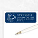 Den här returadressetiketten har en marin blå bakgrund färg som kan anpassas med elegantens vita skript "Vi har flyttat!" och anpassningsbar adress text som kan vara helt personlig för din nya adress. Perfekt för flytta-meddelande och helgdag-kortutskick.