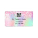 En holografisk trendig med enmajsfärg och regnbåge färg i rosa, lila, myntgrönt. Dekorerad med konetti. Anpassa och lägg till din egen QR-kod till din egen webbplats eller ditt eget mediekonto i social, namn och returadress.