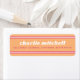 Roligt returetiketter med vit och hallon rosa gräns överst och grund på varm orange bakgrund. Retrotypografi. Typsnitt och färg kan anpassas med verktyg.