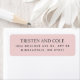 Klassiska returetiketter. Svart serif och sans serif typsnitt på rosa. Håll dig till den lämnat fram - eller baksidan av höljet och paket.