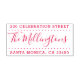 Anpassa enkelt den här anpassningsbarna Elegant Split Adress Self-Inking Returadress självinking gummi frimärke med ditt eget namn och adress. Om du vill anpassa gummimallen klickar du på "Anpassa den här frimärket" och ändrar texten i rutorna. Finns i 9 olika färger och 6 storlekar. Se din design på bildskärmen så nära den faktiska storleka som möjligt för att se till att texten skrivs ut på förväntad storlek. För användan som returadress frimärke kommer de flesta människor att behöva en större storlek. Dessa självtryckande gummi frimärke frimärke med returadress upp till 10000 tryck med varje cylinderampull har en mjuk hand för säkert grepp och finger utan bläck och en miljövänlig processaa för tillverkning. Ingen minsta orderkvantitet.