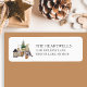 Dessa söta, rustiska returetiketter har en vattenfärgad illustration av en söt kvinnlig gnom som sitter bredvid en miniatyr Julgran, en basket av födelseloggar och vissa ljus. Lägg till familjens namn och adress i grått-serif-teckensnitt för kol.
