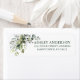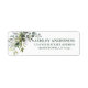 Modern Elegant Watercolor Botanical Grey Bröllop Return-adressetikett omfattar eucalyptus löv, grönt botaniskt löv, dammiga blå löv och andra vackra botaniska grejer. Grönt