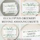 Denna botaniska returadressetikett dekoreras med vattenfärgen eucalyptus foliage. Ursprunglig vattenfärg © Michel Davies.