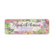 Anpassadets returadressetikett är en vacker blandning av elegans och stollig. Den visar på en invecklad design av olika blommor och löv, som är målade i en levande palett med levande färg som rosa, grönt, gult och blått. Den här färgstarka bakgrunden tillför etiketten en aning bohemisk konst, skapar den inte bara funktionell utan även estetiskt tilltalande. Det finns ett anpassade namn som är vackert inskrivet i stort, elegant kursivt brev. Precis under namn finns adress i ett mindre, men lika snyggt och läsbart teckensnitt. Den här märkningen handlar inte bara om att dela med sig av adress, utan om att dela biet i stil.