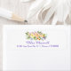 De här returetiketterna har en färgstark blommigt med vattenfärg, med färg av tangerinbild, guld, gult, blått, violett, grönt med mera. Din anpassningsbar är i lila blå längst ned i mitten. Bilder och text placeras på en vit bakgrund. Om du vill ändra färg, storlekt, plats eller teckensnitt för texten väljer du Anpassa. De här etiketterna matchar vår linje Willow och Blommigt Bröllop.