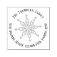 Lägg till lite elegans i din helgdag-e-post med den här festliga julen returadress frimärke. Perfekt för att visa din familj namn har de här anpassadena en snyggt runt textlayout med minimalistisk, vismisk snöflingshastighet under vintern. Designade med en rustisk charm blandar de enkel typografi och ett öga-klickande post frimärke stil, perfekt för att skicka varma semesterhälsningar. Anpassa din i dag för att lägga till en unik elegant till din säsong-korrespondens!