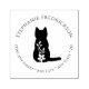 Tillsätt en touch av fantasifull charm till din utgående post med denna eleganta returadressdesign med silhuetten av en botanisk katt. Denna konstnärliga layout är perfekt för nya hemägare, bröllopsinbjudningar eller daglig brevpapper för den hängivne kattälskaren. Den cirkulära typografin skapar en professionell men unik look för kuvert och paket. Oavsett om du skickar ut julkort eller flyttmeddelanden ger detta naturinspirerade kattmotiv en sofistikerad och personlig känsla till varje poststycke.