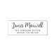 Modern och minimalistisk returadress frimärke, med en ren och snyggt utformning med elegant typografi i svart och vitt tidlöst. Teckensnittet har en handskriven avslappnad, ge det till en unik och personlig känsla. Anpassa enkelt texten med ditt namn och adress för att skapa ett frimärke i stil!