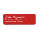 Ditt namn och adress personlig på ett enkelt sätt.. i en levande röd etikett med text som är justerad efter den lämnat texten.