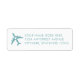 En returadressetikett för roligten med ett turkosflygplan med en perfekt för hjärtcentrum för alla typer av destinationsbröllop, resor, flygtema eller inbjudan till strandbröllop eller spara datumet. Plocka perfekt färg att samordna med din passinbjudan, inbjudan om ombordstigning eller flygplan biljett spara datumen. DESIGN NOTES: Klicka PÅ ANPASSA YTTERLIGARE för att plocka nytt färger för flygplanets fyllning färg och bakgrund. Teckensnitt och färg kan också ändras.