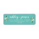 Chic, modern och enkel returadressetikett för bröllop med namn i handskrivet manusgrafi med vit elegant med en snyggt av gröntens blad på en tårblå bakgrund. Lägg bara till namn och adress. Enbart designad för dig av Lycklig Dolphin Studio. Kontakta oss på happydolphinstudio@outlook.com om du behöver hjälp eller matchande produkter. Vi är lycklig för att hjälpa dig att göra bröllop till den vackraste dagen!