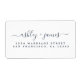 Chic, modern enkel returadressetikett för bröllop med namn i ett handskript för mörk blått elegant på vit bakgrund. Lägg bara till namn och adress. Enbart designad för dig av Lycklig Dolphin Studio. Kontakta oss på happydolphinstudio@outlook.com om du behöver hjälp eller matchande produkter. Vi är lycklig för att hjälpa dig att göra bröllop till den vackraste dagen!