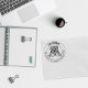 Denna "Returadress" gummi frimärke har en Bulldog-Hund med eget namn och adress.